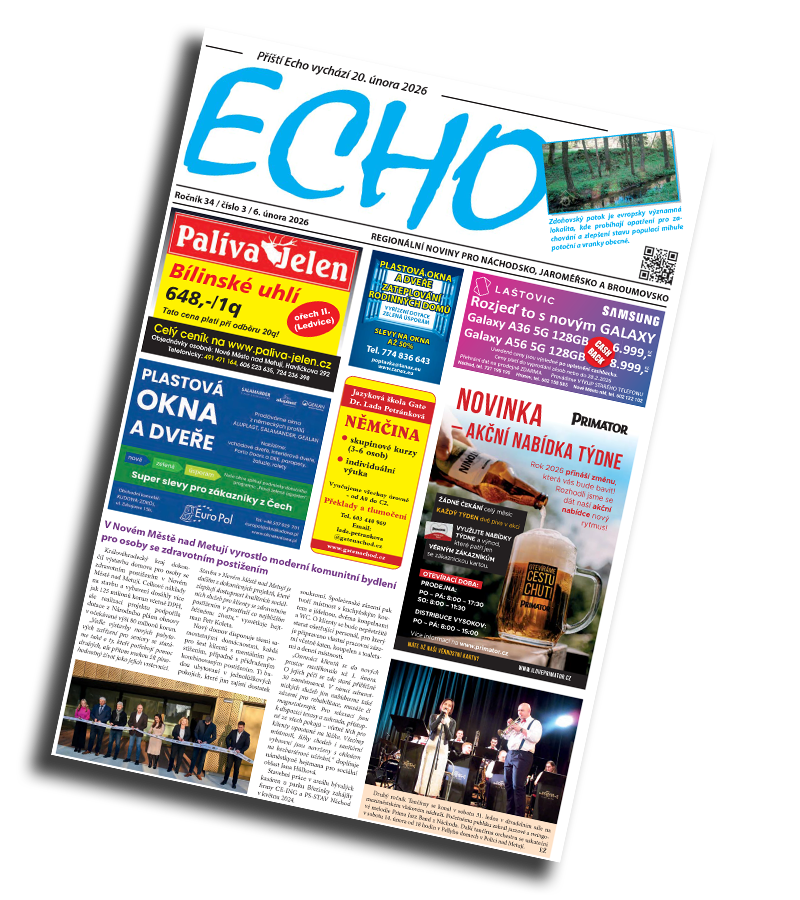 Echo je regionální titul zaměřený na obyvatele Náchodska. Přináší místní zpravodajství, praktické informace a témata, která lidi v regionu skutečně zajímají. Inzerce se dostává přímo do domácností v celém okrese.